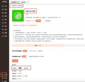 3. 您也可以登录订货宝 PC 管理端,通过“应用—专属订货小程序—小程序名”自行核对 是否为订货宝系统绑定的订货商城。