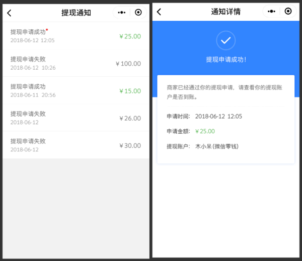 3.问:参与其他营销活动的产品是否有推广/邀请奖励? 答:是,只要商家将其添加为推广产品,则计入,奖励计算以实付金额为准。 4.问:微信零钱和支付宝提现都为即时到账吗? 答:是的。 5.问:如果商家的微信支付商户号或者支付宝商户号余额不够,那提现是否成功?如果不成功提示什么? 答:不能提现成功,在后台对应的提现记录里会显示“打款失败,请确保微信支付商户号(或支付宝商户号)余额充足,再进行打款”,同时推广员的“提现通知”会有提现失败的提醒,失败原因显示为“商家支付账号余额不足,请联系商家”。 拓展阅读:《小程序分销商城|营收救星——推广员功能上线》 拓展阅读:《推广员功能与分销商功能的区别》